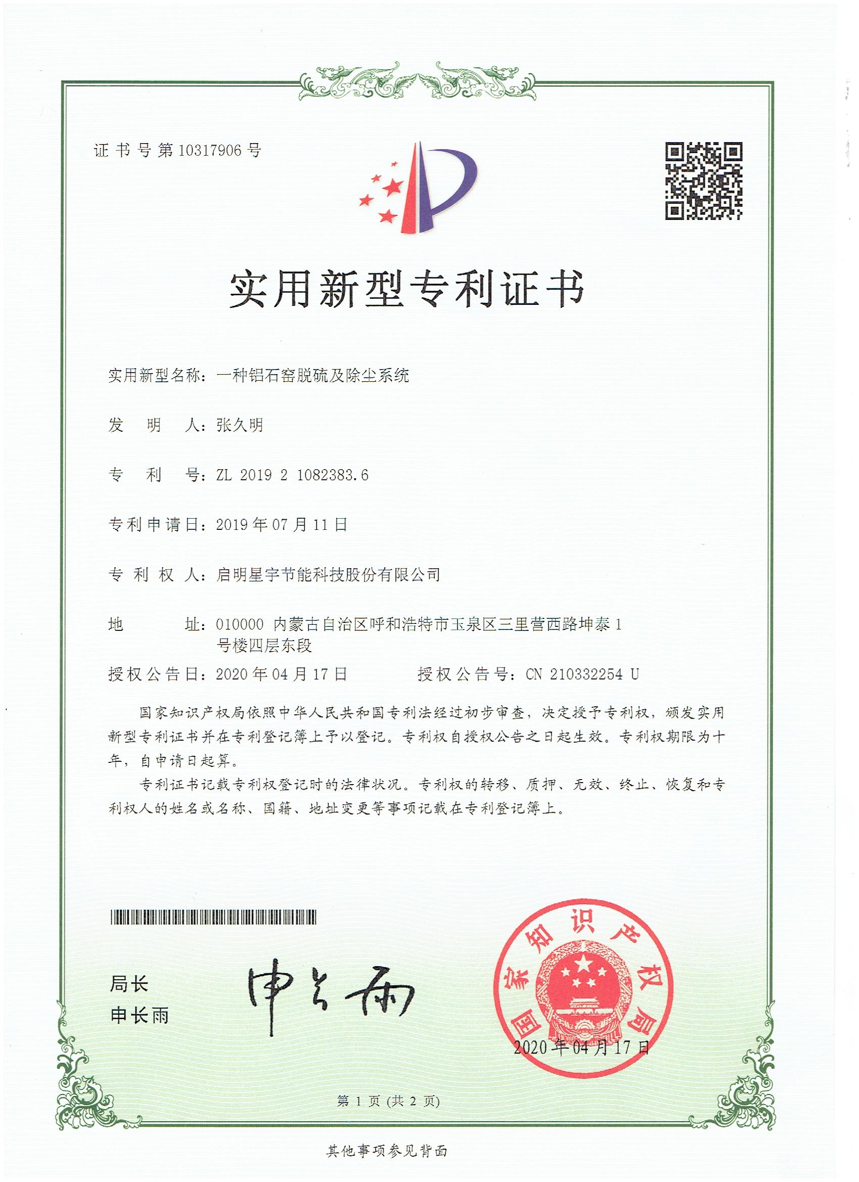 一種鋁石窯脫硫及除塵系統(tǒng)實(shí)用新型專利