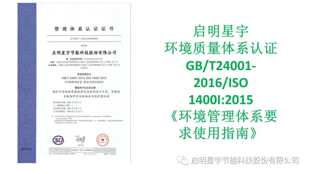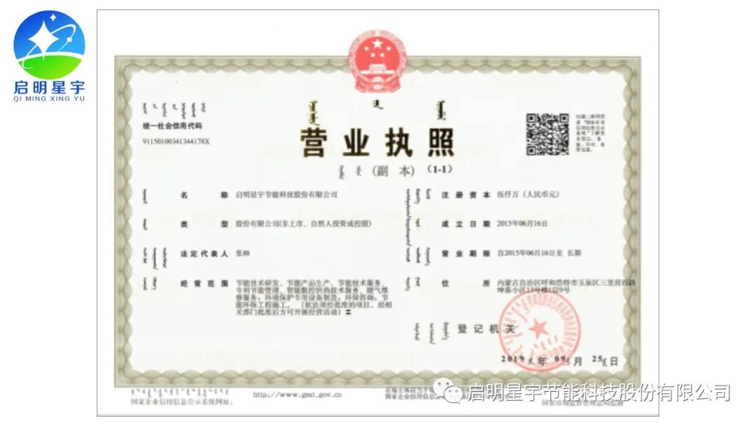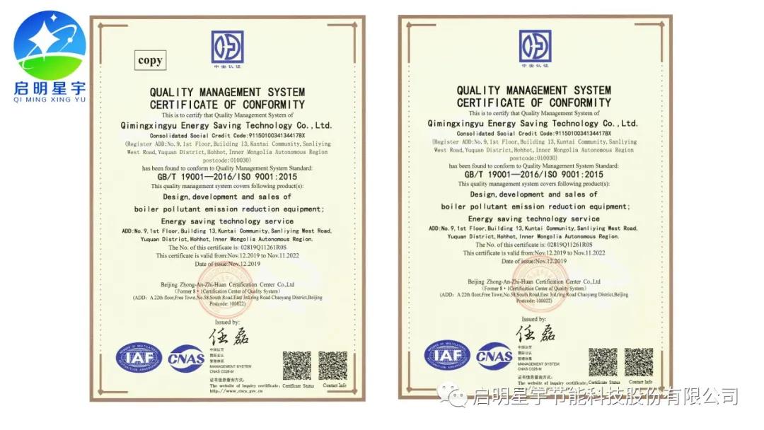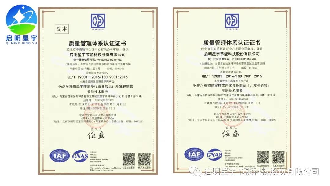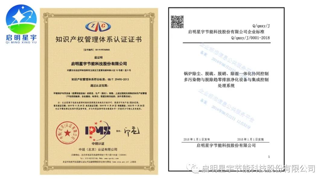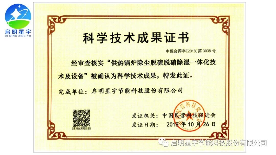 啟明星宇超低排放專(zhuān)利證書(shū)