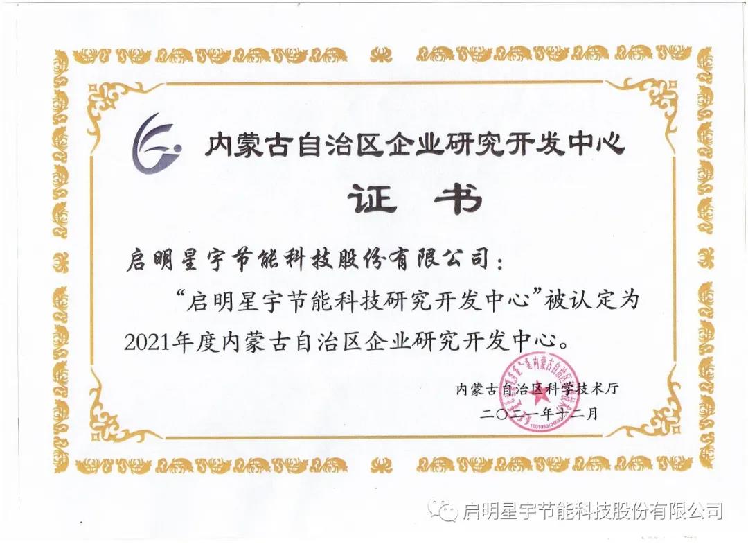 熱烈祝賀啟明星宇研發中心,升級為《2021內蒙古自治區企業研發開發中心》