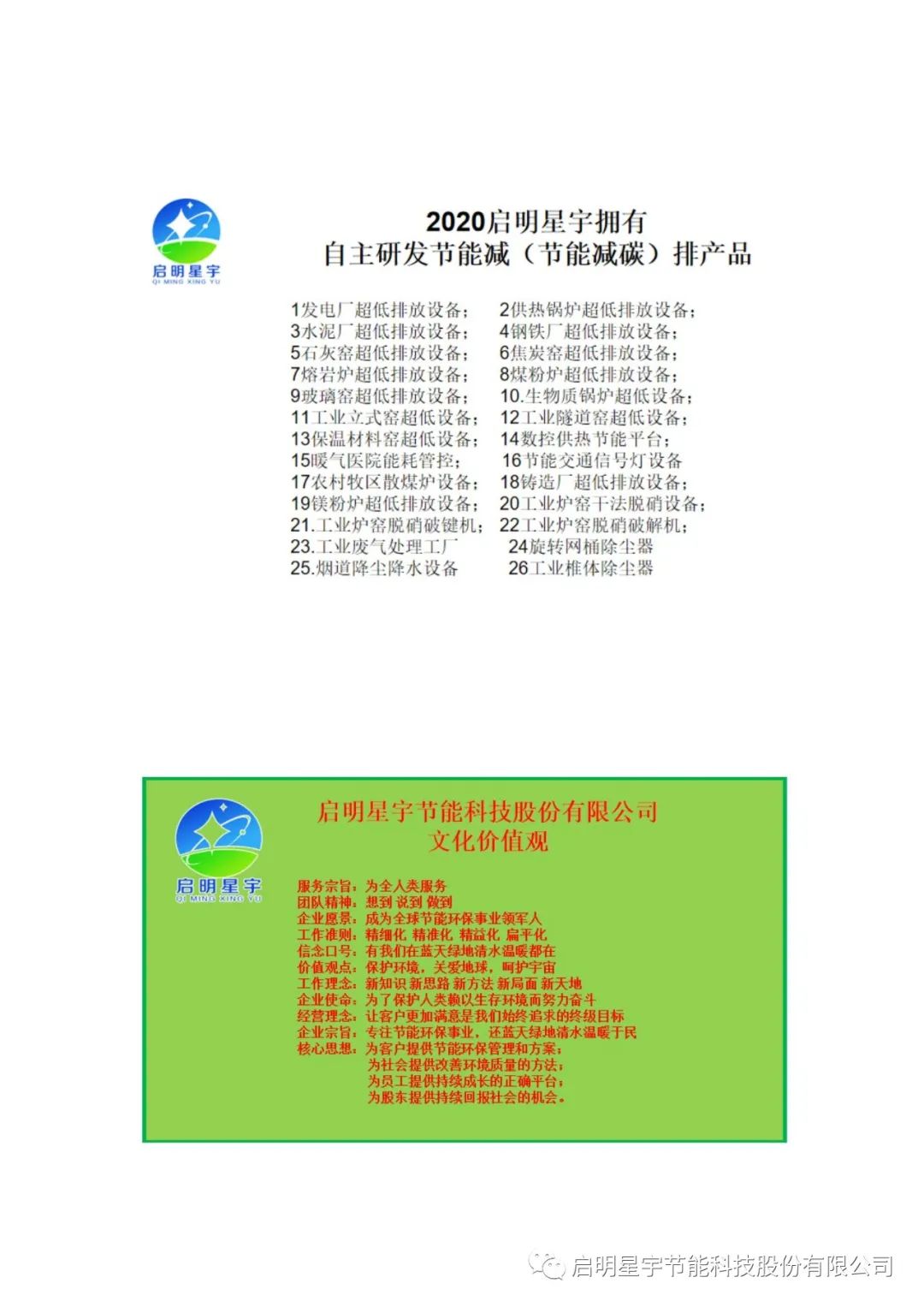 2020年啟明星宇擁有自主研發26類節能減排新產品