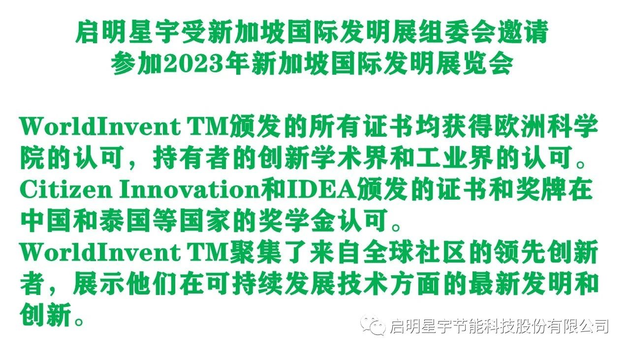 熱烈祝賀:啟明星宇節(jié)能科技股份有限公司,參加48屆日內(nèi)瓦國際發(fā)明博覽會(huì),慶祝iIFIA國際發(fā)明聯(lián)合會(huì)成立55周年!