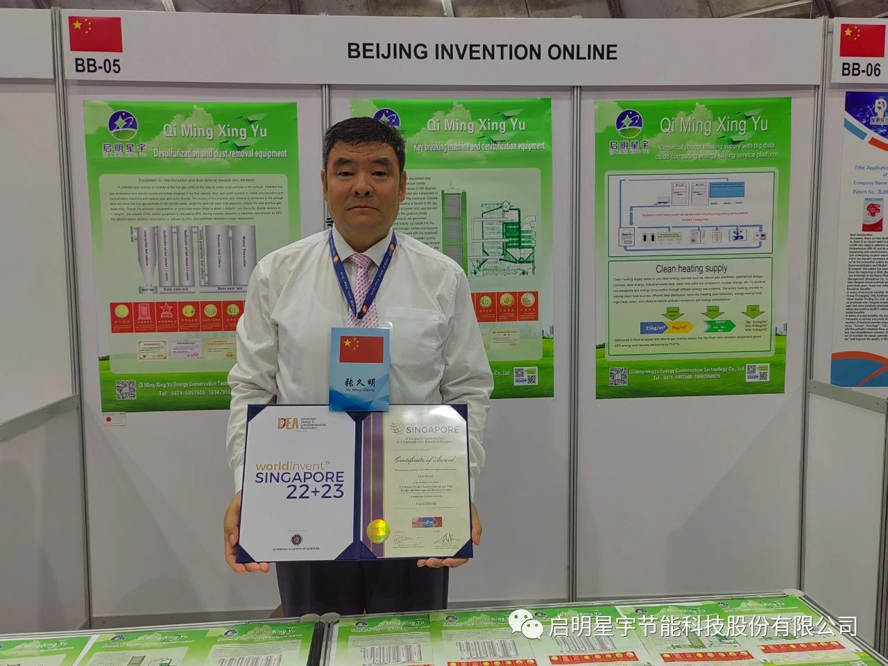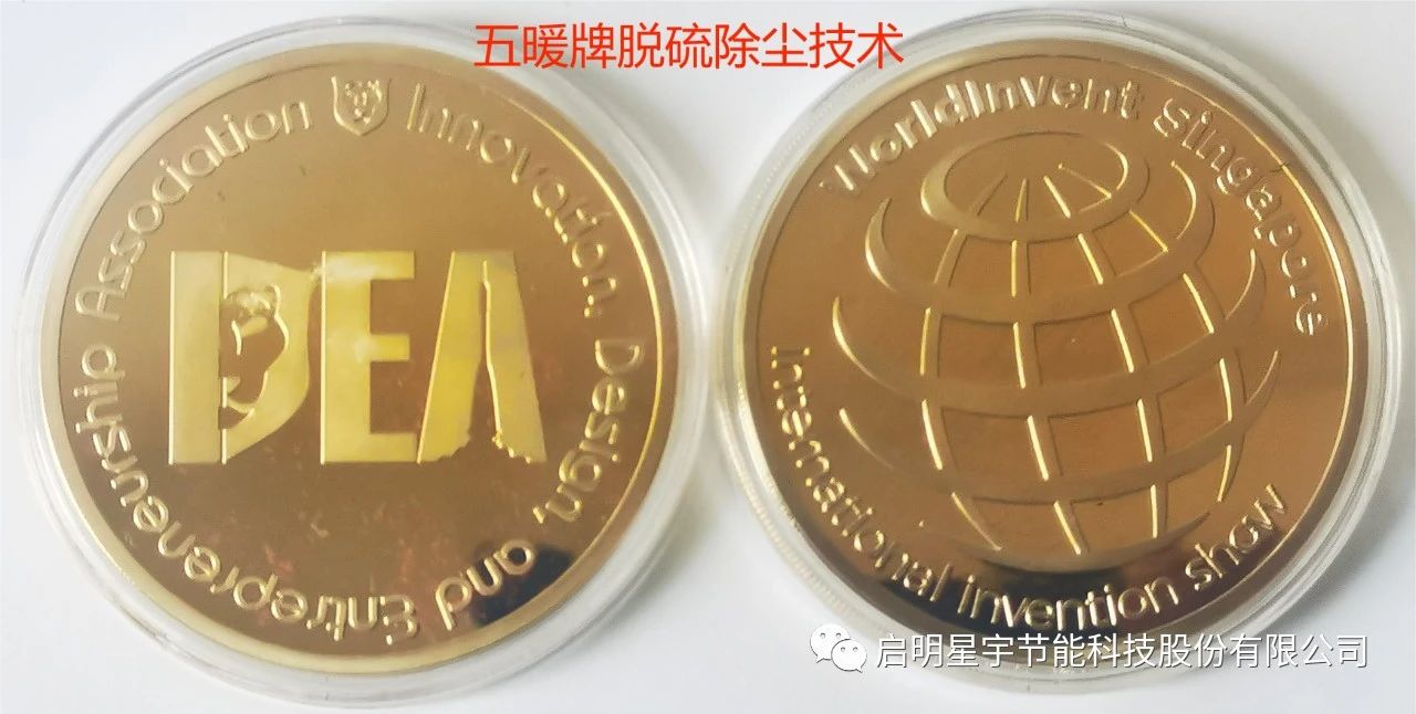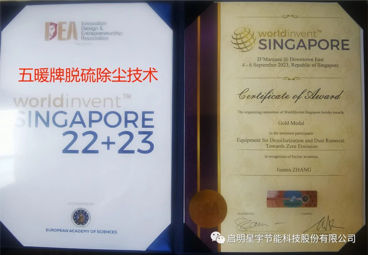 啟明星宇,五暖牌超低排放脫硫除塵脫硝設備,獲得新加坡國際發明展覽會《全球最佳原創發明獎》,同時獲得,新加坡國際發明展覽會雙金獎