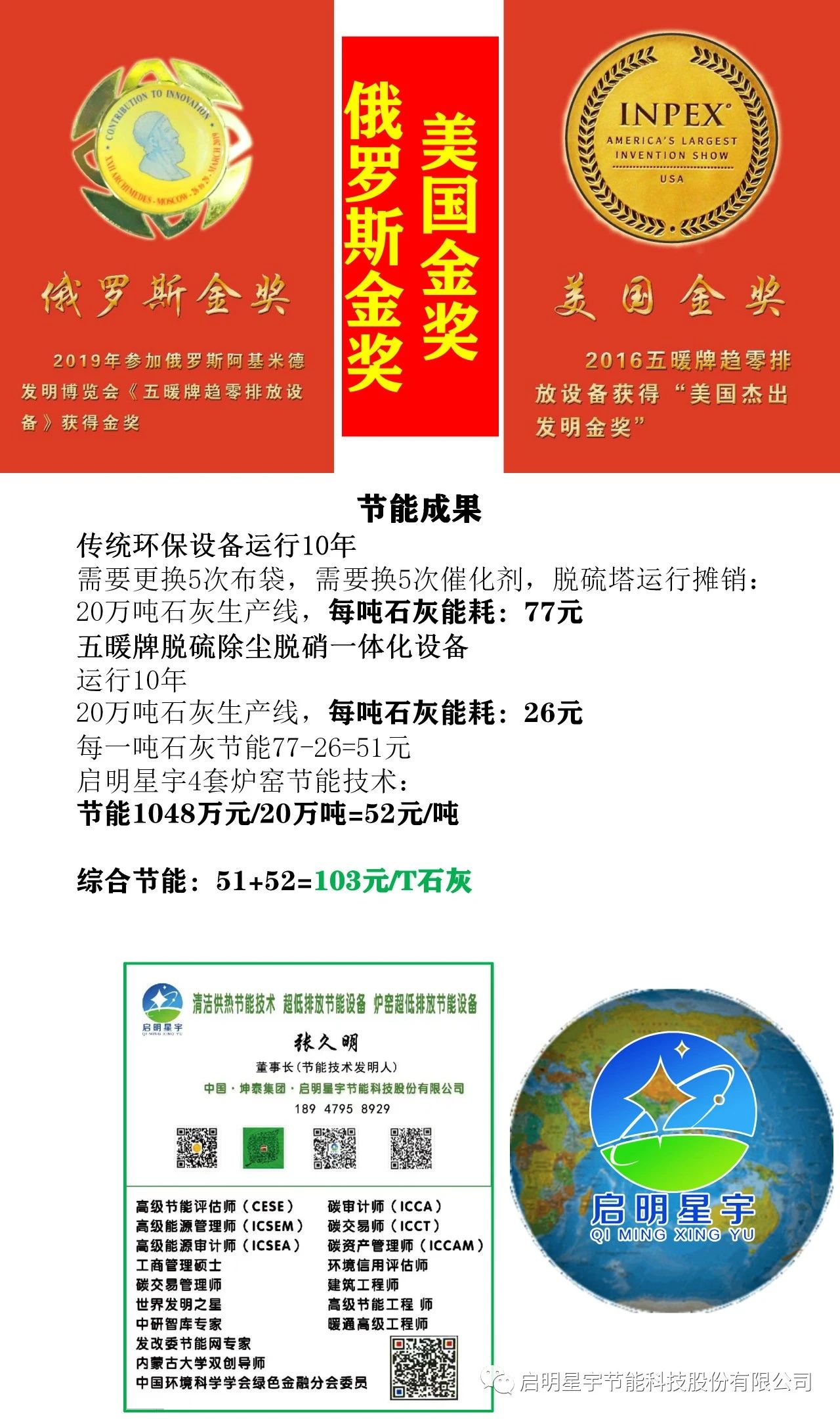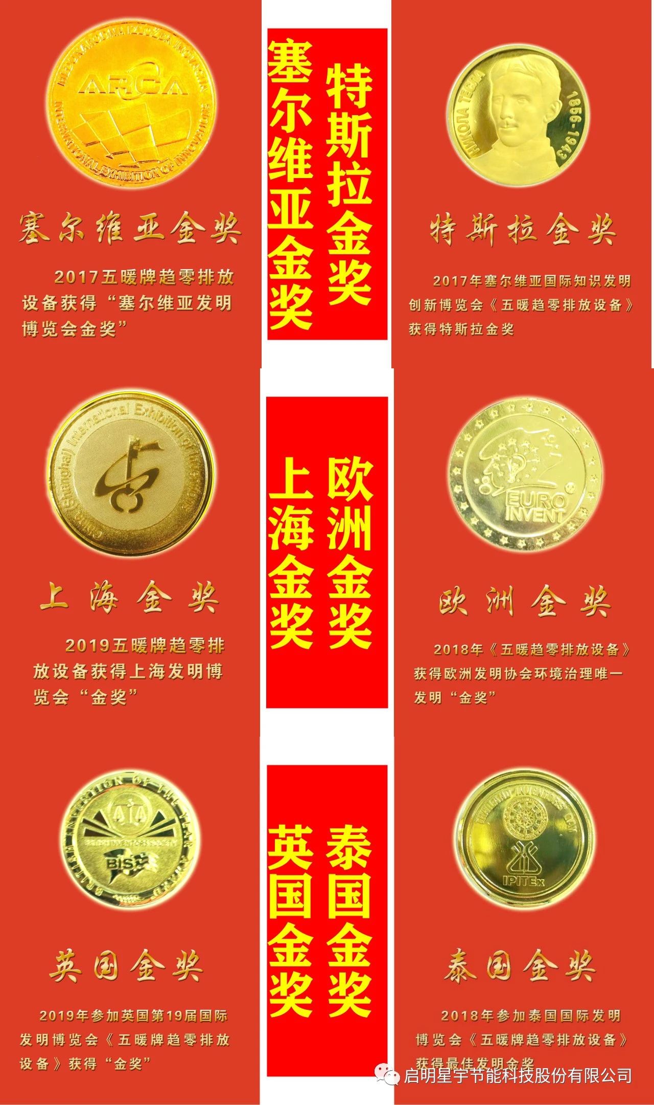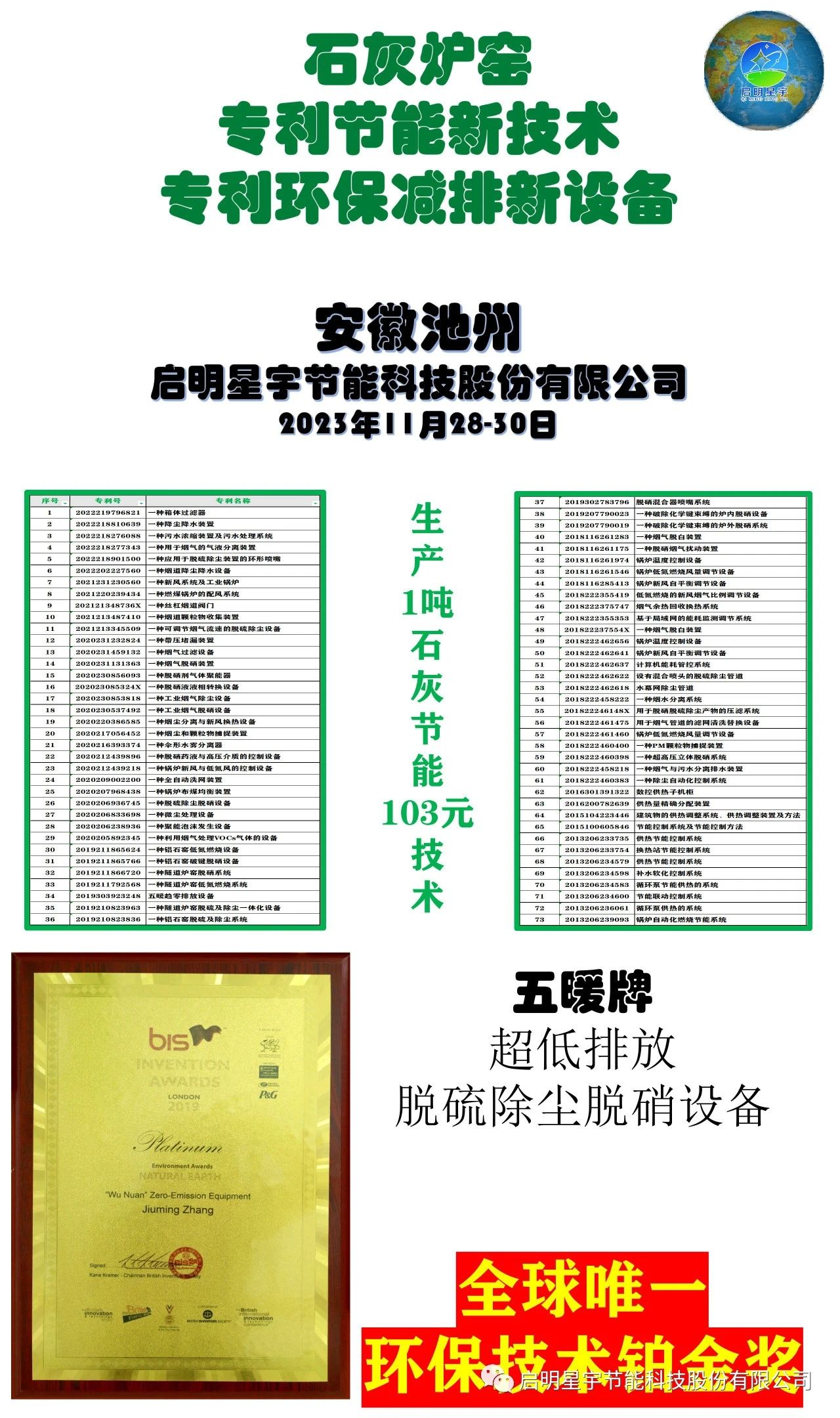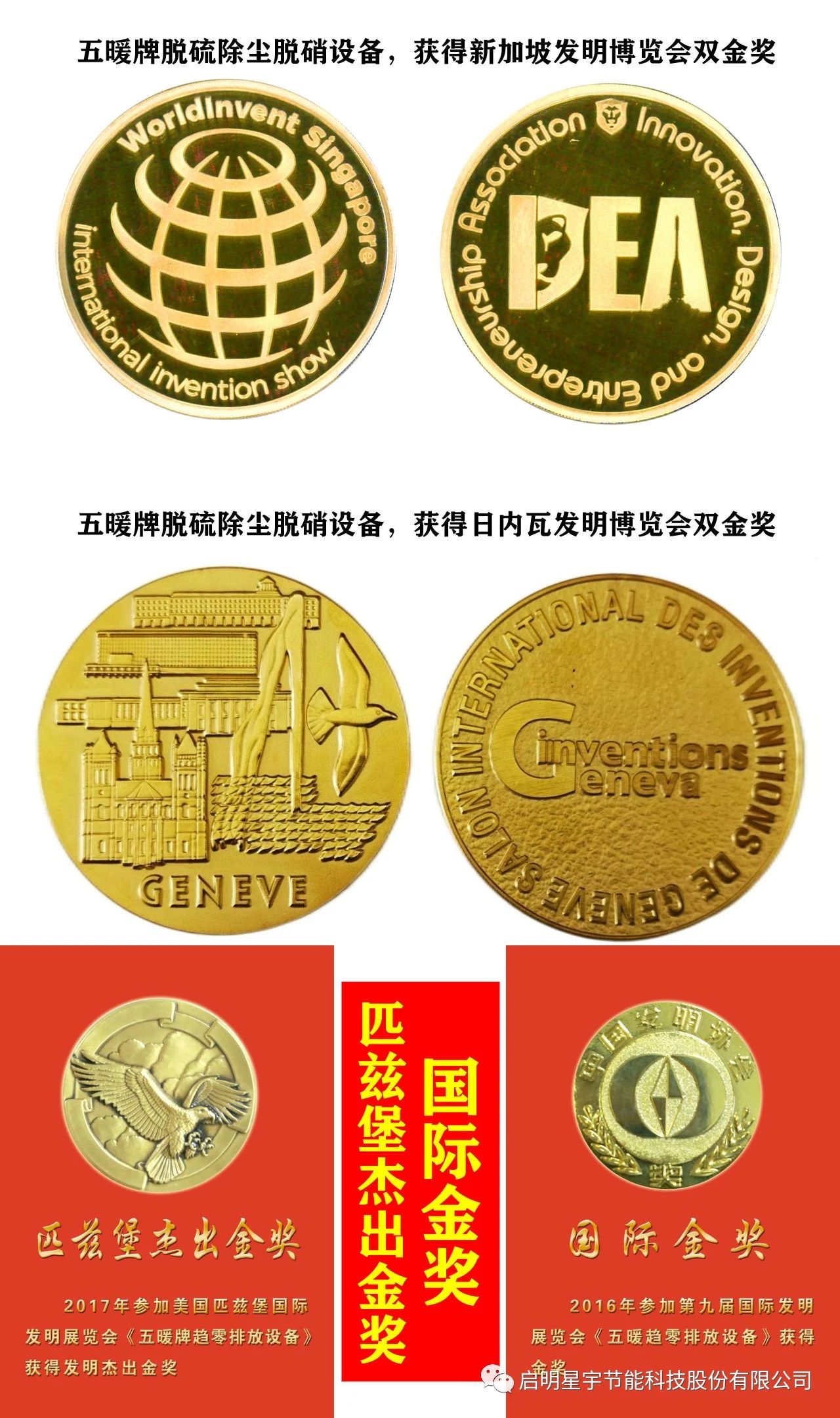 2023年獲得日內瓦48屆國際發明展覽會,《五暖牌脫硫除塵設備和五暖牌破鍵機脫硝設備》獲得發明雙金獎