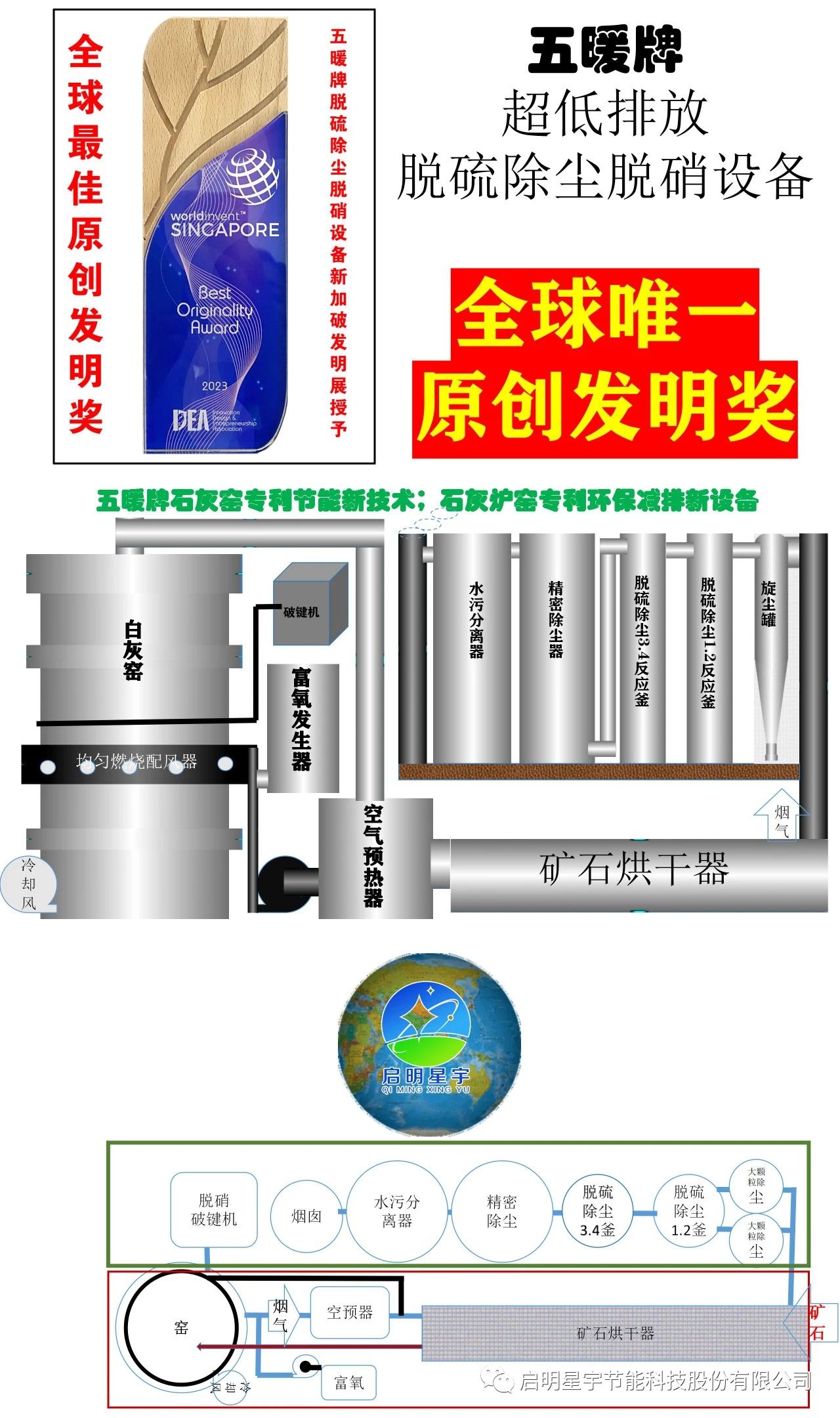 2023年新加坡展覽會,《五暖牌脫硫除塵設備和五暖牌破鍵機脫硝設備》獲得發明雙金獎