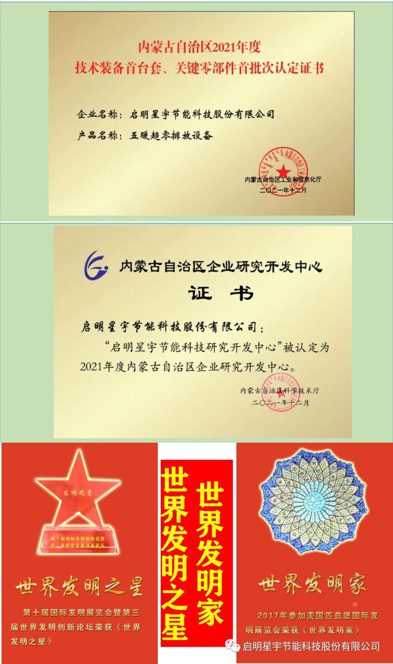 啟明星宇是國家高科技企業,省部級企業研發中心,省部級首臺套原創設備發明設計制造安裝企業,10年來自主研發研發發明專利186多項,軟件著作權10項,香港標準3項,注冊商標67項,擁有節能減碳,節能減排設備35大類,下面是榮譽
